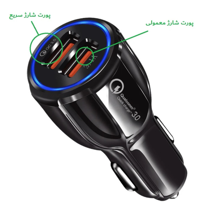 شارژر فندکی مدل 6A Car Charger، دارای خروجی های (5 ولت، 6 آمپر) و (9 ولت، 2 آمپر) و (12 ولت، 1.6 آمپر) میباشد. این شارژر از تکنولوژی شارژ سریع QC 3.0 استفاده میکند و دارای حداکثر توان 32 وات میباشد. این شارژر مجهز به خنثی کننده نوسان میباشد و با روشن و خاموش شدن خودرو به آن آسیبی وارد نمیشود، البته، بهتر است سیستم برق کشی خودرو استاندارد باشد. این مدل دارای چراغ آبی زیبا برای پیدا کردن شارژر در نور کم میباشد و دارای 2 پورت است.